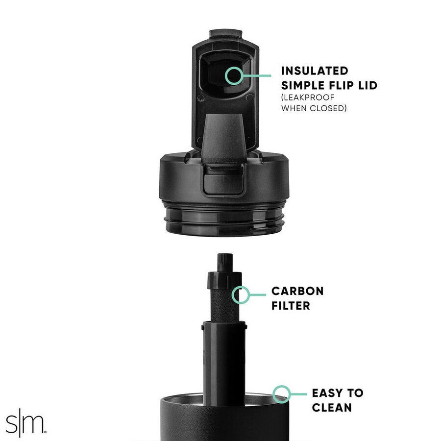 Ingår: Ett kolfilter, ett filterhölje som fästs på filtret och ett ofiltrerat sugrör. Filtertid: Ett kolfilter räcker till 180 liter – cirka 2 månader. Dubbelväggsisolering: Håller drycker vid idealisk temperatur i timmar. Läckagesäkert lock: Det enkla fällbara sugrörslocket erbjuder en tät försegling för att förhindra läckage. Det är kompatibelt med det filtrerade PP-sugröret och det ofiltrerade PE-sugröret som används i andra Simple Modern-produkter. Rekommenderas inte för varma eller kolsyrade drycker. Mugghållarvänlig: 24oz Mesa passar i de flesta mugghållare. 34oz Mesa passar inte i de flesta mugghållare. Pat/Pat Pend