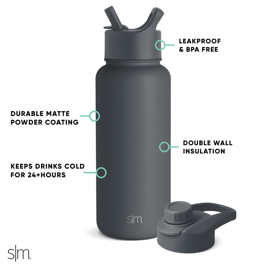 Vakuumisolerad: Håll din dryck kall i timmar med denna dubbelväggiga, isolerade vattenflaska på 940 ml. 2 BPA-fria, läckagesäkra lock ingår: Ett sugrörslock och ett sugrörslock – båda är läckagesäkra när de är stängda. Mugghållarvänliga storlekar: Summit-vattenflaskorna på 400–660 ml passar i de flesta mugghållare. Summit-vattenflaskorna på 940–2370 ml passar inte i de flesta mugghållare. Ej avsedd för varma eller kolsyrade vätskor: Tryck kan byggas upp i flaskan och orsaka läckage eller spill. Amerikanskt patent väntar